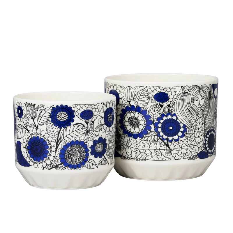 Arabia’s Pastoraali plant pot is adorned with an organic pattern Esteri Tomula designed in 1965. Featuring human characters among flowers, leaves and birds, Pastoraali was given a deep shade of blue since the new silk screen-printing technique allowed the use of bright colours. The rich pastoral landscapes have been printed on a white, clean-lined ceramic plant pot.