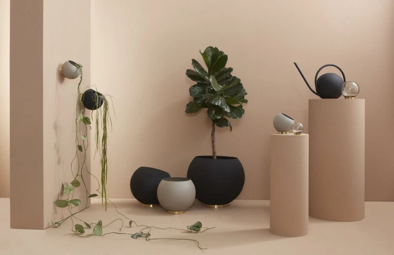 The Globe from the Danish brand AYTM is a fascinating, wall-mounted flowerpot made of powder-coated iron. The round, brass-based wall pot provides a wonderful setting for houseplants and flowers but it can also be used for storing small items. The Globe flowerpots come in several sizes and tones, and they combine beautifully with the glass vases of the Globe collection.