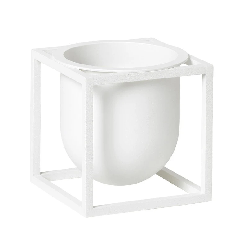 By Lassen’s Kubus flowerpot continues the geometrical design of the famous, Bauhaus-inspired Kubus collection. A combination of a cubic metal frame and cylinder-shaped container, Kubus flowerpot provides a beautiful setting for flowers and houseplants and goes perfectly together with other members of the Kubus collection. Like the bowls of the Kubus range, the flowerpot comes with a plastic insert and can also be used as a decorative object or storing small items. Kubus flowerpot was designed by Søren Lassen.