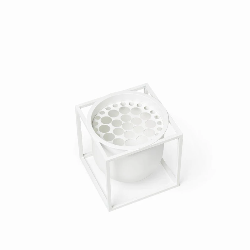 By Lassen’s Kubus flowerpot continues the geometrical design of the famous, Bauhaus-inspired Kubus collection. A combination of a cubic metal frame and cylinder-shaped container, Kubus flowerpot provides a beautiful setting for flowers and houseplants and goes perfectly together with other members of the Kubus collection. Like the bowls of the Kubus range, the flowerpot comes with a plastic insert and can also be used as a decorative object or storing small items. Kubus flowerpot was designed by Søren Lassen.