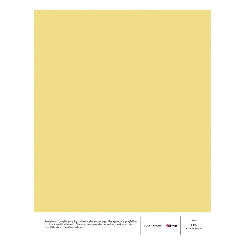 Cover Story’s shade i02 Toini is a classic light yellow that adds a fresh feel to the space and refracts light create a luminous glow – as if the room was filled with sunshine. Part of the Cover Story x Iittala capsule collection, the paint is inspired by Iittala’s extensive glass colour archive: Toini’s bright hue is Cover Story’s interpretation of Iittala’s yellow-coloured glass. Toini is the perfect pair for oak furniture or any shade of blue or grey, either as a larger surface or a smaller decorative stripe, for example.