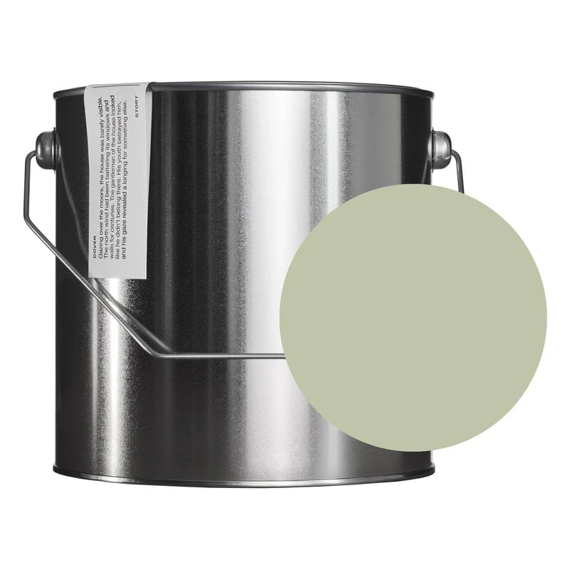 Cover Story’s interior paint in the shade 027 Hermann is a soft light green paint with yellow undertones – it fills the room with a serene, natural atmosphere. Hermann is a matte paint and provides a smooth, non-reflective finish on the painted surface.