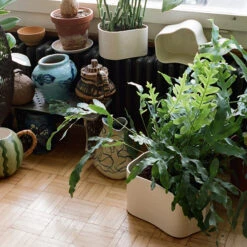ferm LIVING’s Bau balcony box gives your home, balcony or garden a touch of clean, industrial spirit inspired by the Bauhaus architecture. The curved shape and subtle colours of Bau balcony boxes create a beautiful setting for herb gardens and blooming flowers. Easily mounted with two hooks and a metal bracket, Bau boxes are made of galvanized steel suitable for outdoor use, and they have a smart drainage system at the bottom.