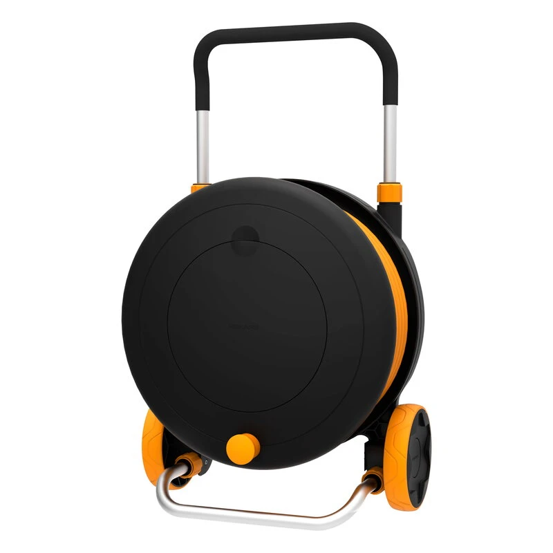 The Fiskars waterwheel makes watering terrace or garden plants neat and effortless: the reel cart has padded wheels and an adjustable handle that makes it easy to move around in the garden, and a 360-degree rotating reel that expands the watering area considerably. The cart can be placed both vertically and horizontally, which also makes it easier to store the waterwheel.