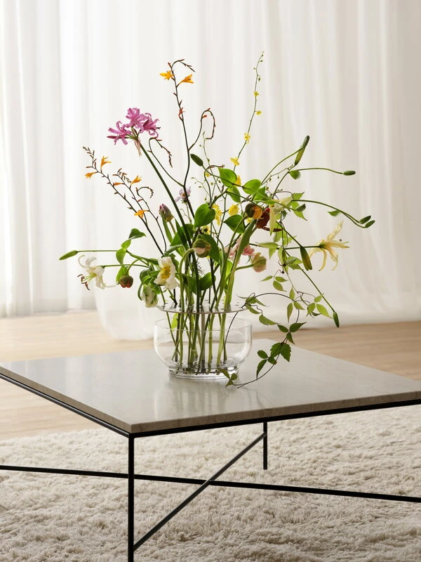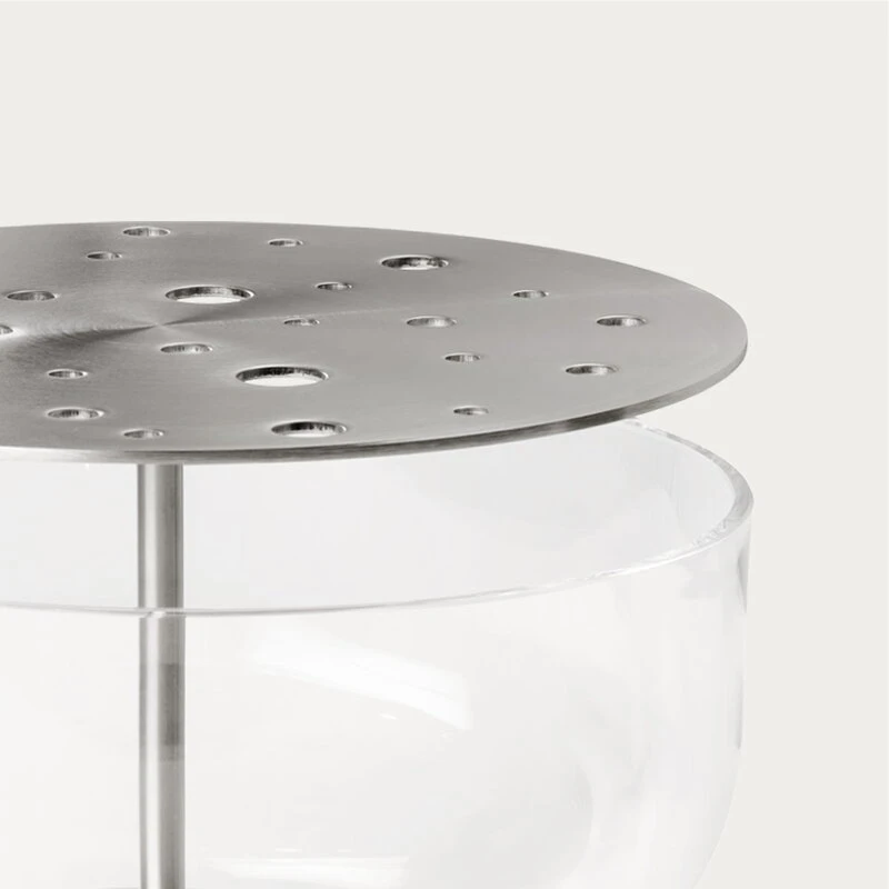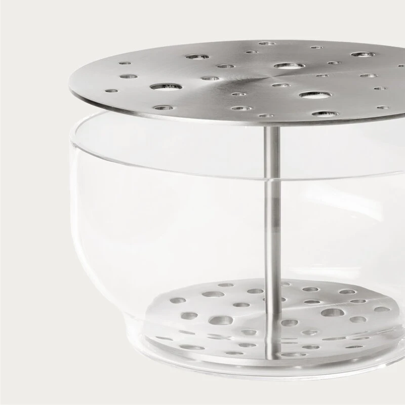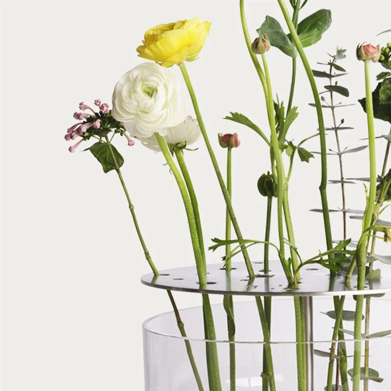 Fritz Hansen’s Ikebana vases, designed by Jaime Hayón, were inspired by the traditional Japanese art of flower arrangement. Hayón’s idea was that you should be able to enjoy the whole flower, not just the blossom: the ingenious design features a mouth-blown glass vase with a steel insert that can be used to arrange the flowers as desired. You can choose whether you want to create a big, lush bouquet or only use a few of the holes in the brass insert.