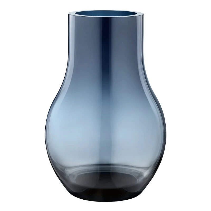 Georg Jensen’s Cafu glass vase was designed by Sebastian Holmbäck and Ulrik Nordentoft. The vase’s simple and beautiful form reflects the timeless quality of Georg Jensen’s modern classics. The deep blue shade highlights the vibrant colours of flowers but will suit arrangements of plain twigs and branches as well. Combine the vase with other Cafu vases to create a harmonious collection.