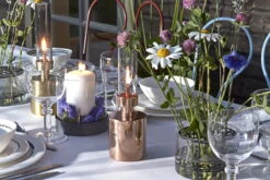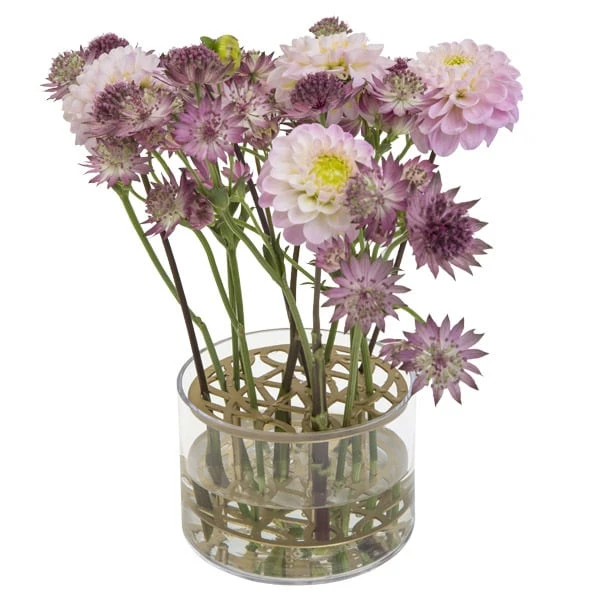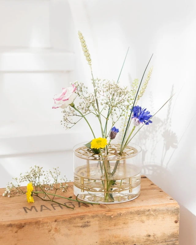 Klong’s Äng, designed by Eva Schildt, is an intriguing vase that makes creating flower arrangements easy. The name Äng, Swedish for meadow, refers to the way flowers stand in the vase: the double-tiered brass frame separates the stems and holds them upright. The beautiful frame rests in a cylinder-shaped bowl that is made of blown glass. Create an urban flower meadow in your home with the delightful Äng vase or have it on display as a sculptural design object.