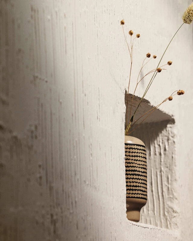 Marimekko’s Siirtolapuutarha vase is adorned with Maija Louekari’s delightful Räsymatto pattern in earthy terra and black. Made from brown stoneware, the Siirtolapuutarha vase is the perfect companion to a wild bouquet of fresh flowers but it also makes a stunning decorative as such.