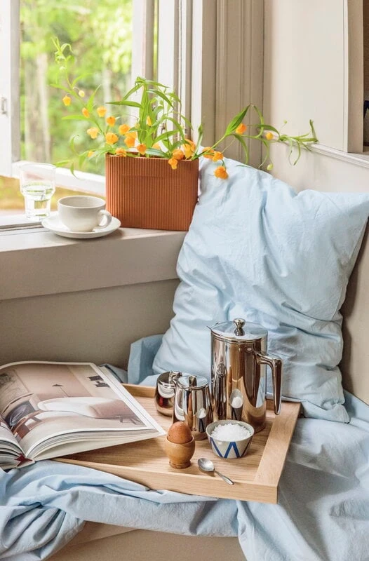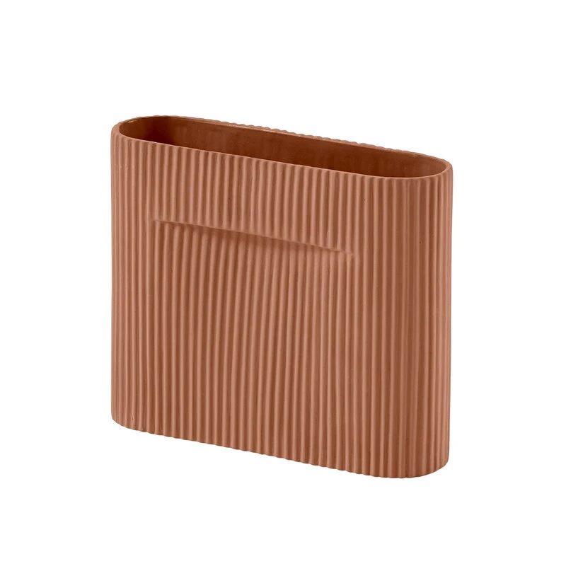 Muuto’s Ridge vase, characterised by a distinctive form and vertical lines running along the vase’s unglazed outer surface, was designed by Helsinki-based Studio Kaksikko’s Wesley Walters and Salla Luhtasela. Inspired by a facade the designers came across in Paris, the vase’s sculptural form is designed to make an impact with or without flowers.