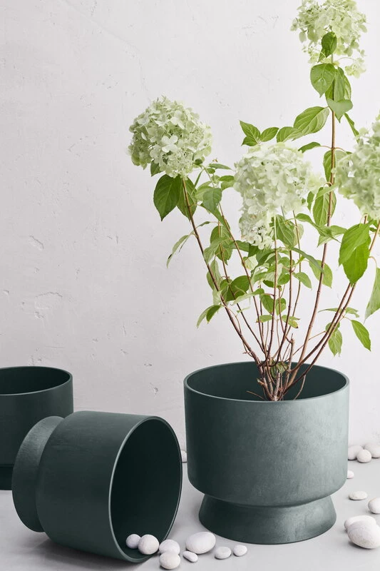 The Rosendahl flowerpot is an elegant option for both indoor and outdoor plants. Designed by Signe Wenneberg, the simple and beautiful pot has a marble-like surface, but the choice of material is surprising – plastic waste has been given a new life as a flowerpot! The flowerpots are made from 100 % recycled plastic, making them lightweight and easy to handle, but also very durable. The frost-resistant material is ideal for outdoor use. The stackable design makes it easy to store the plastic pots when they are not in use.